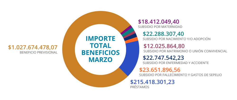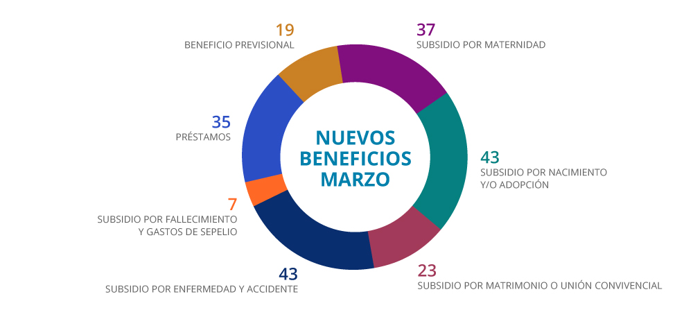 Los mismos fueros otorgados durante el mes de Febrero y corresponden a los subsidios por Maternidad, Nacimiento y Adopci贸n, Matrimonio y Uni贸n Convivencial, Fallecimiento y/o Gastos de Sepelio, Incapacidad e Invalidez, Jubilaciones, Pensiones y Pr茅stamos.